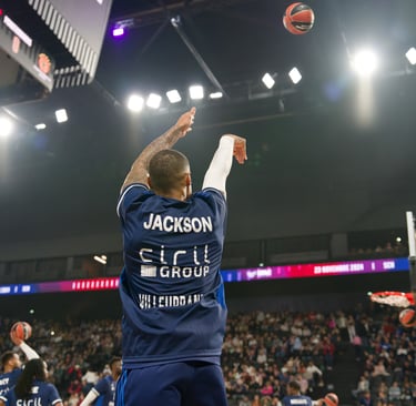 Voltou a marcar de três em transição, colocando o ASVEL em 66–56.